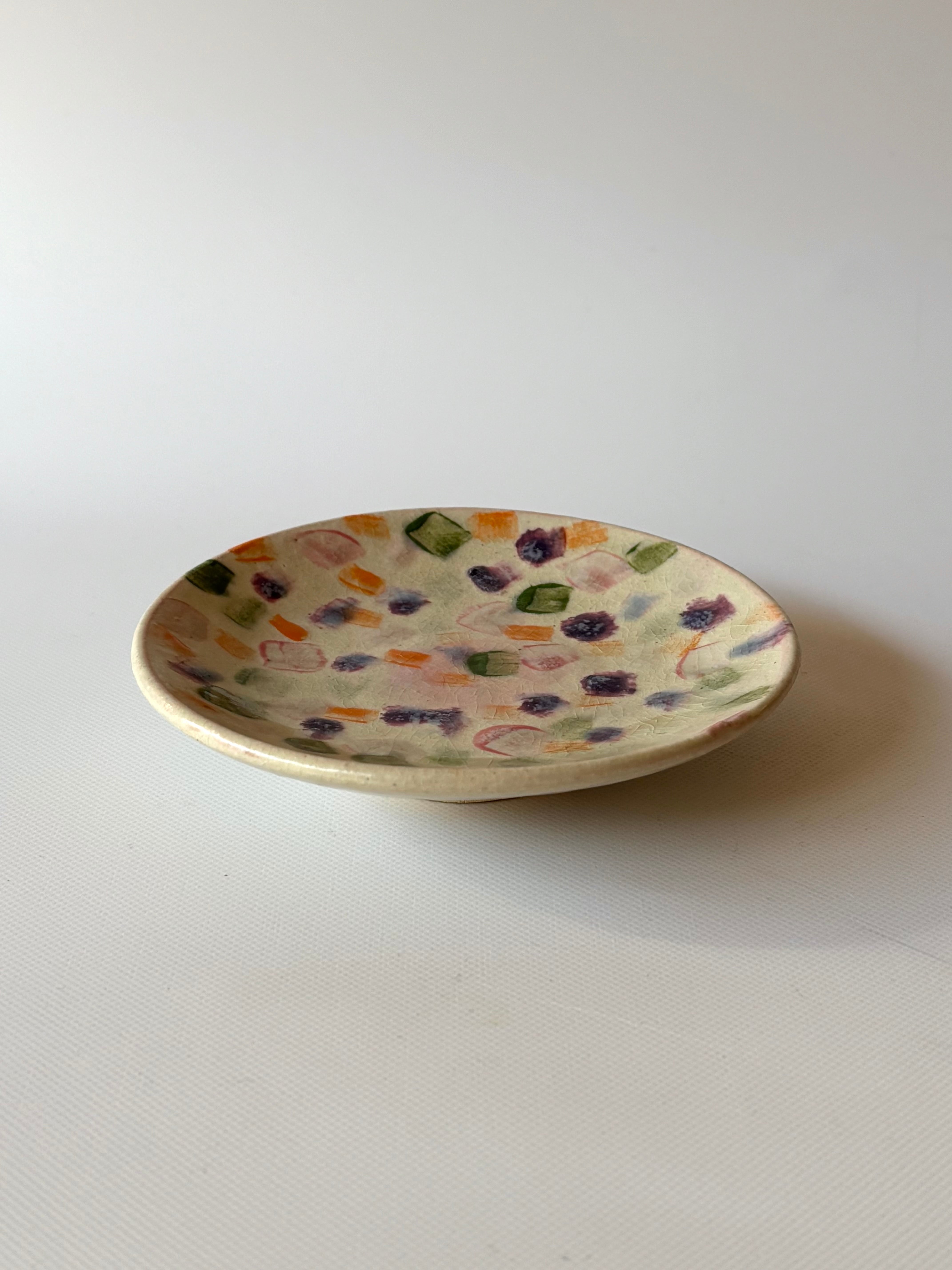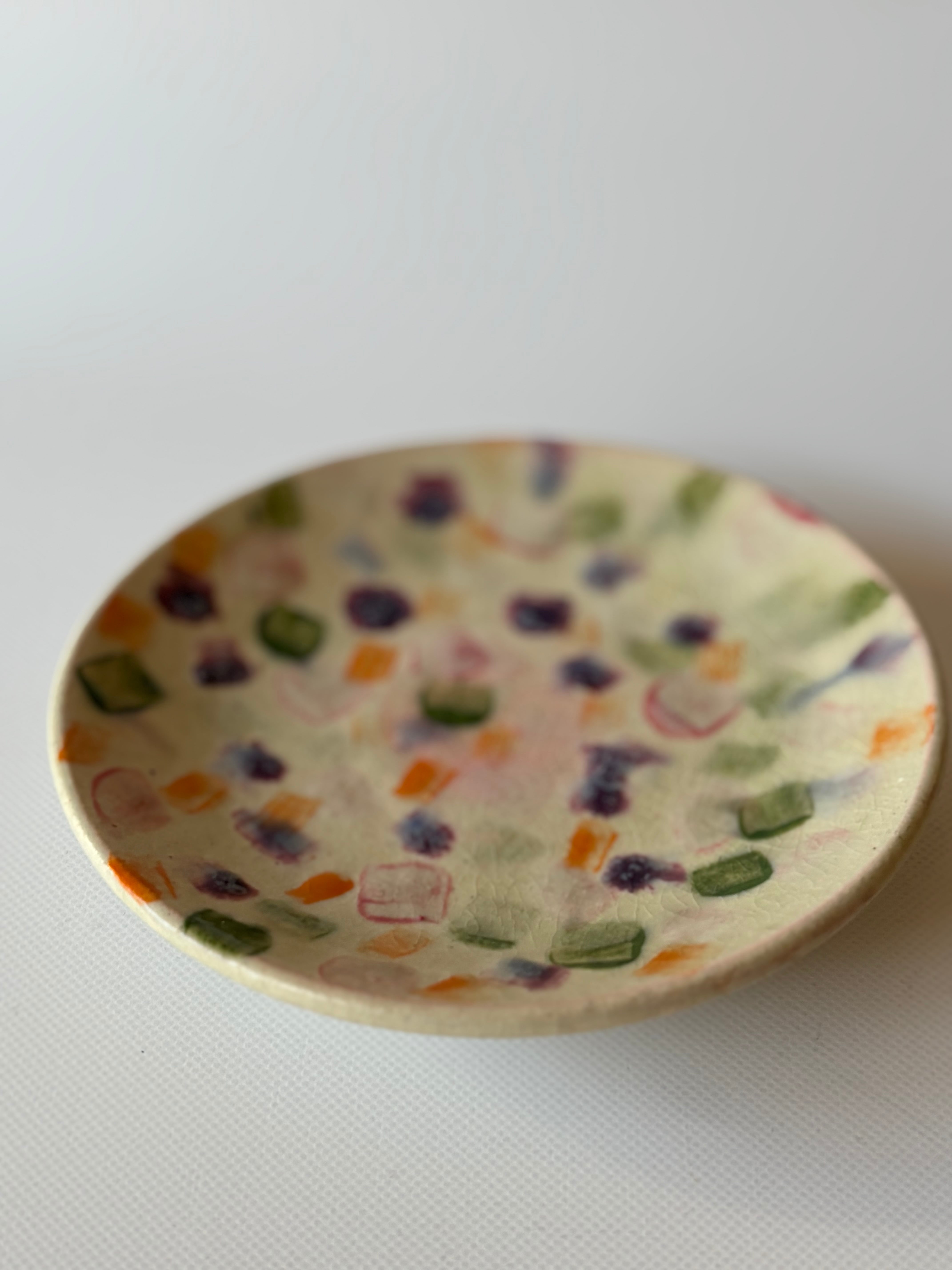 琥珀糖を散りばめたようなお皿。