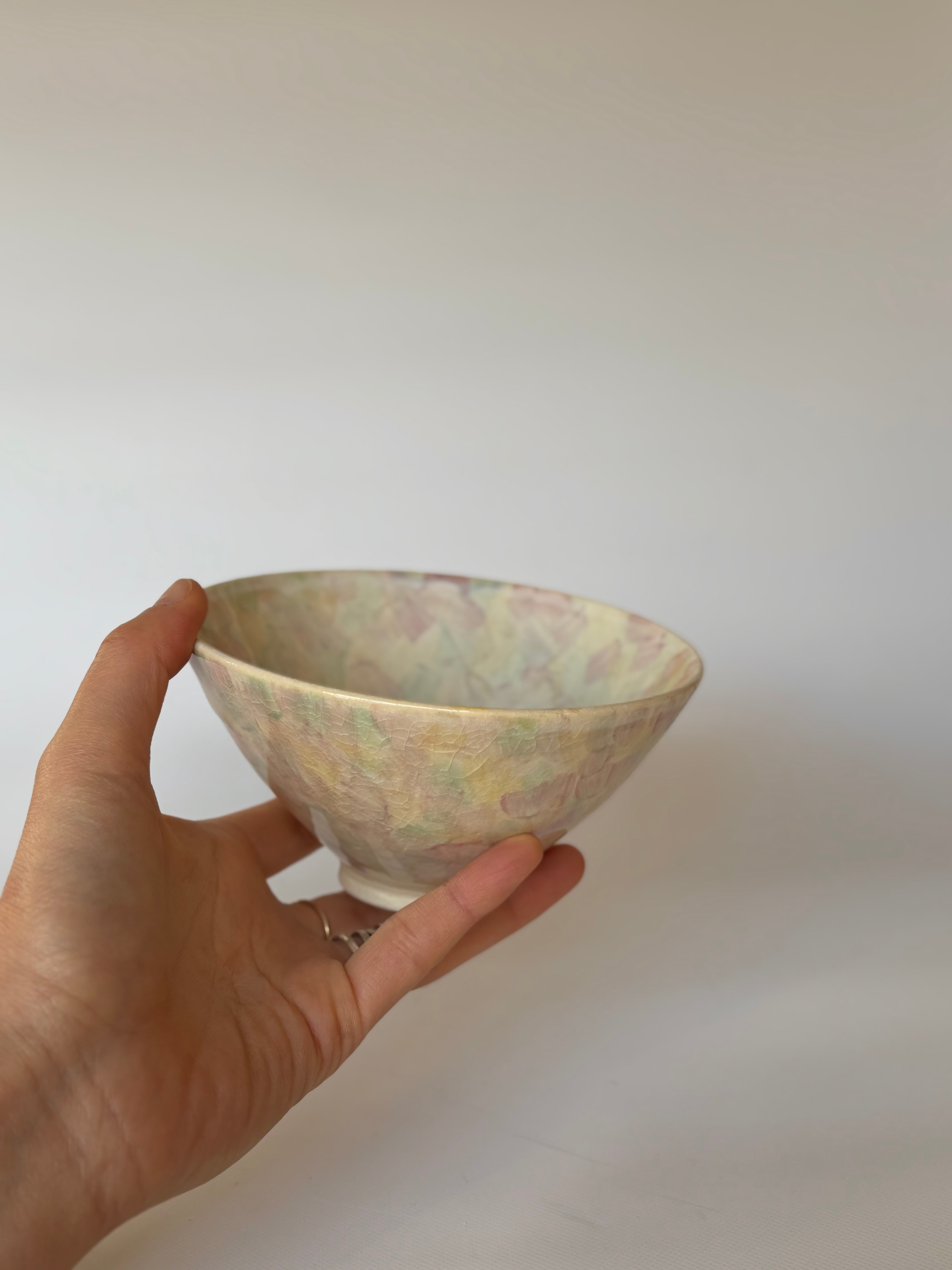 色を点で重ねたお茶碗ボウル ピンク系